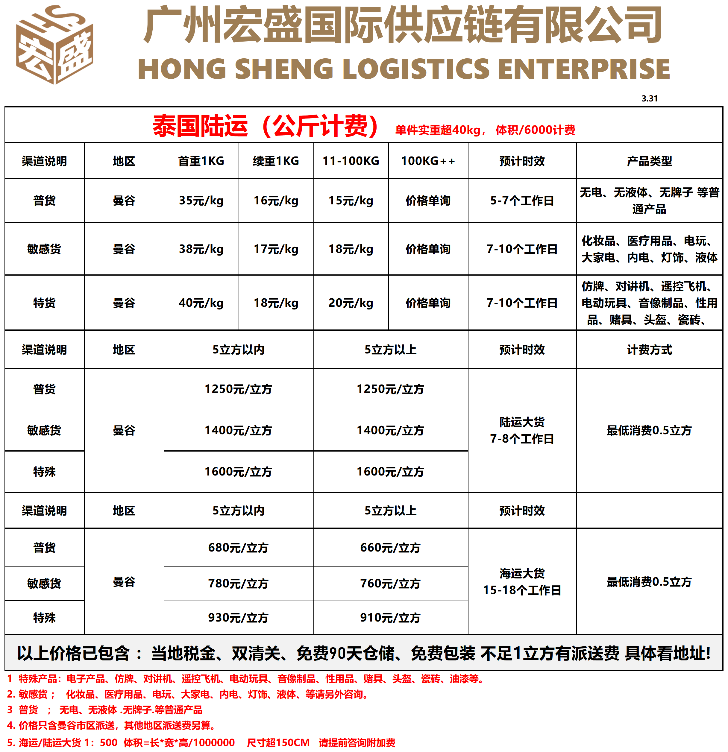* 默认体积重与实重比较,取较重者计算运费,免抛/半抛优惠请参考报价说明。