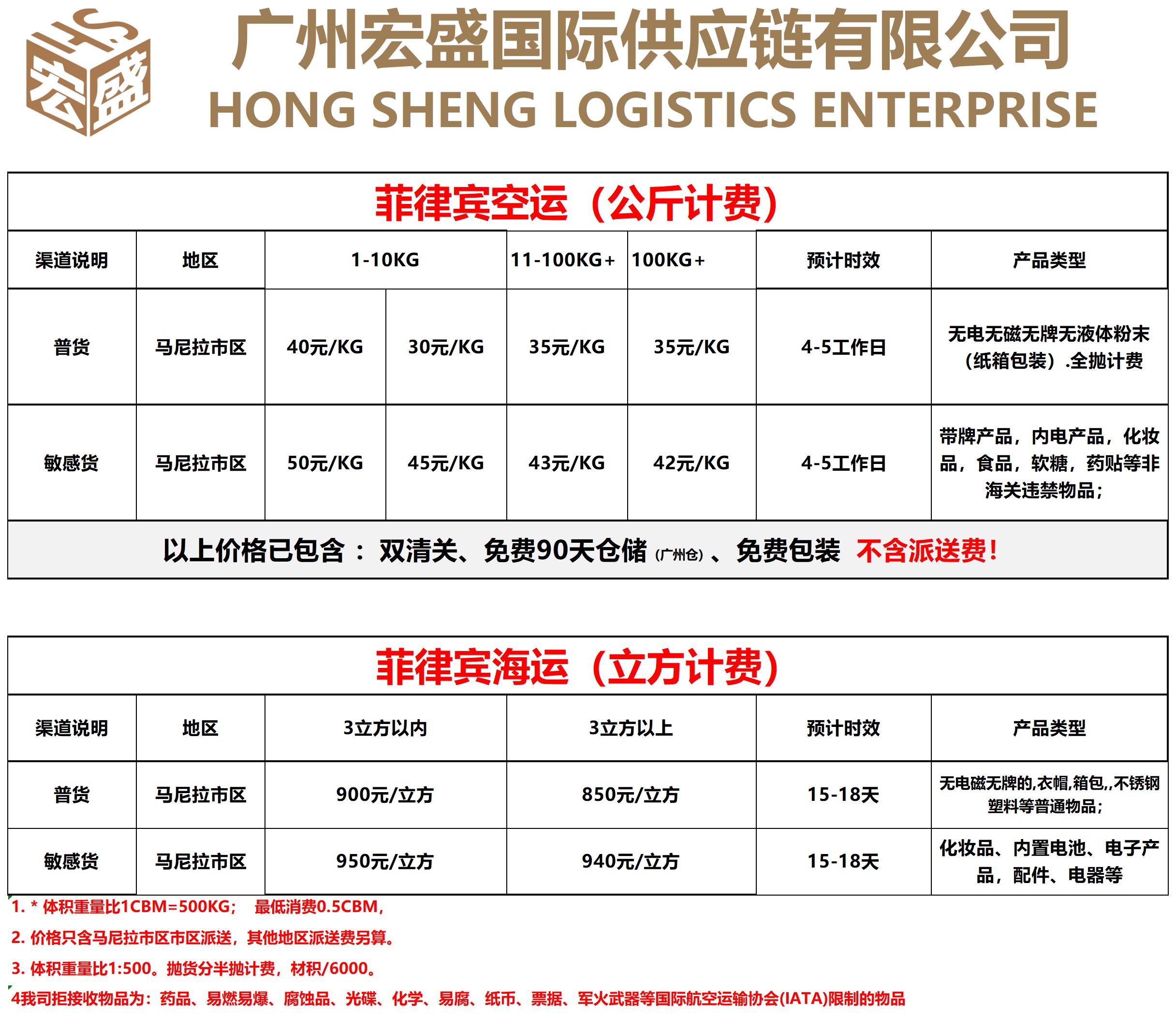 菲律宾马尼拉市区.海运.敏感货(立方计费)